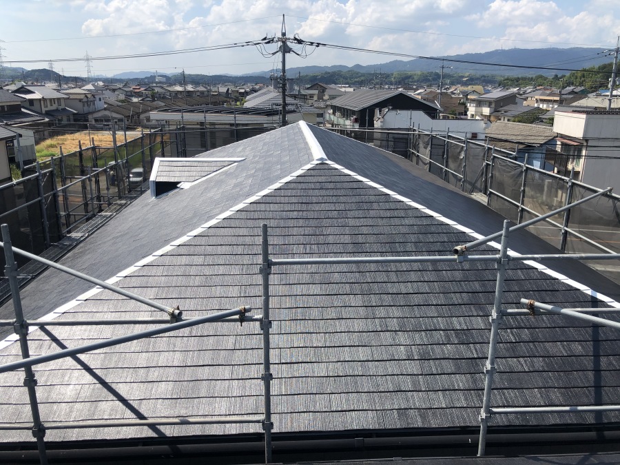 先ほど少し屋根に上がりましたが元の色が黒でさらにシーラーを塗ったことにより黒光りし、