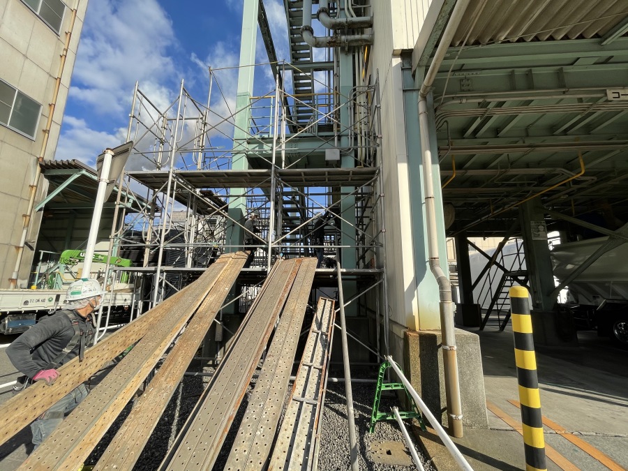 倉敷市は児島地区の工場内にて足場の組立を行っています。